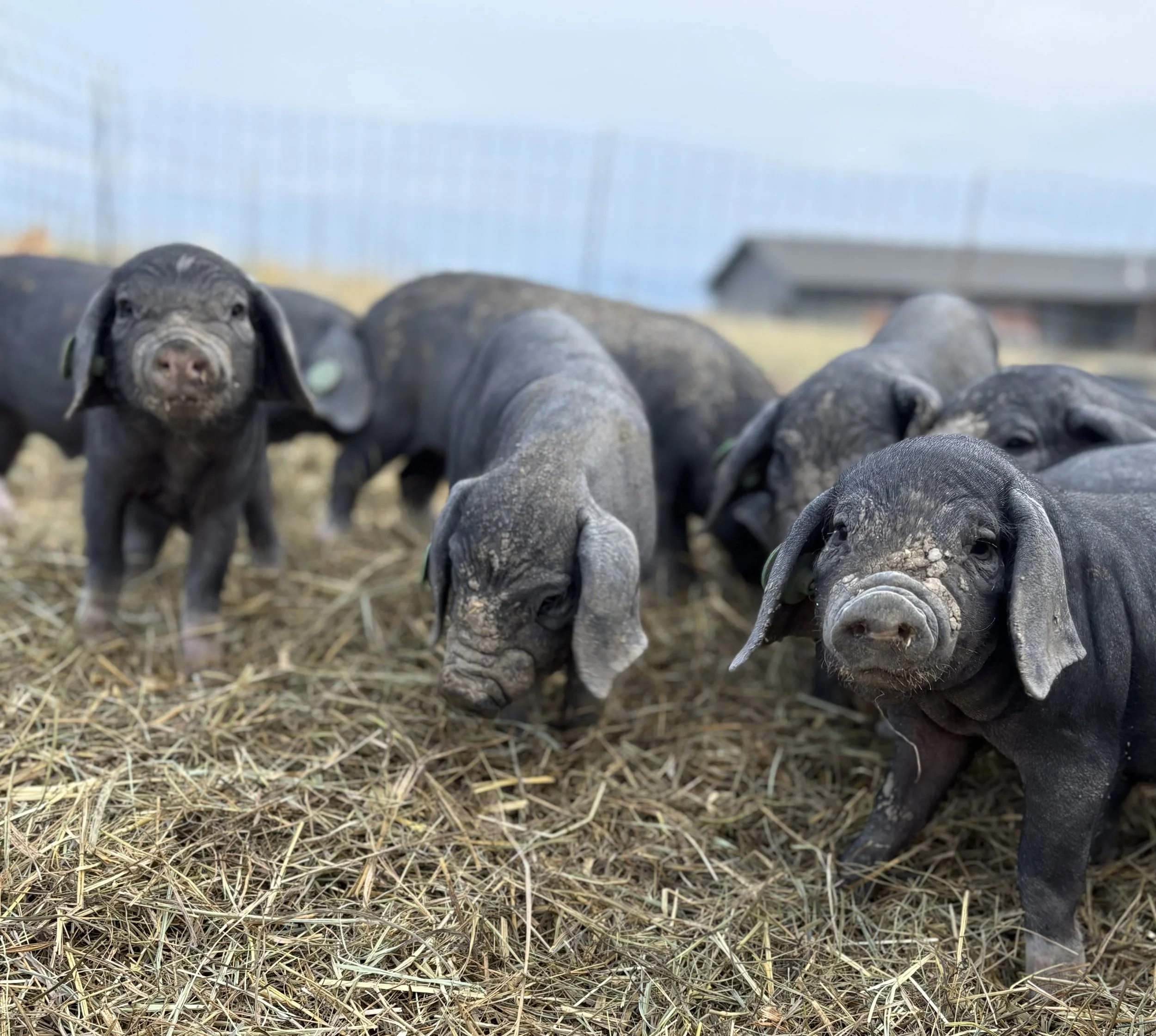 Pigs are single-stomach omnivores just like us, and therefore need more than grass to be truly healthy. All our pigs are given free room to roam on our pastures where they do eat grass, but the foundation of their diet is a custom Montana grain and mineral mix sourced from a locally owned mill and Montana farmers.